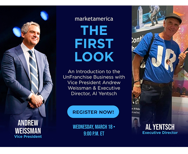 Looking to introduce others to the power and opportunity of the UnFranchise Business? Don’t miss this special First Look presentation featuring insights from two experienced leaders within the **Market America Worldwide | SHOP.COM community. Join Vice President Andrew Weissman and Executive Director Al Yentsch for an engaging session designed to provide an inside look at the business, the vision and the opportunities available through the UnFranchise system. Discover the UnFranchise Opportunity This First Look presentation is the perfect opportunity to introduce guests, prospects and new contacts to the world of Market America. During the session, attendees will gain valuable insight into how the company’s unique business model empowers entrepreneurs to build independent businesses while leveraging the global e-commerce platform SHOP.COM . Andrew and Al will share practical guidance, leadership insights and an overview of how individuals can begin their journey toward entrepreneurship within the UnFranchise community. Event Details Date: March 18 Time: 9:00 p.m. ET The session will be conducted in English , with Chinese translation available to support our growing international community. Invite Your Guests Events like this are powerful tools for sharing the vision and introducing others to the possibilities available through the UnFranchise Business. Be sure to invite your guests and encourage them to attend this informative and inspiring presentation. Register now to reserve your spot and take a first look at the opportunity.