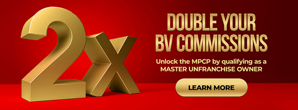 UFOs who satisfy the Master UnFranchise Owner (MUFO) criteria by December 31, 2025, will earn double BV commissions for the first quarter of 2026 (Jan. 1 – March 31, 2026).