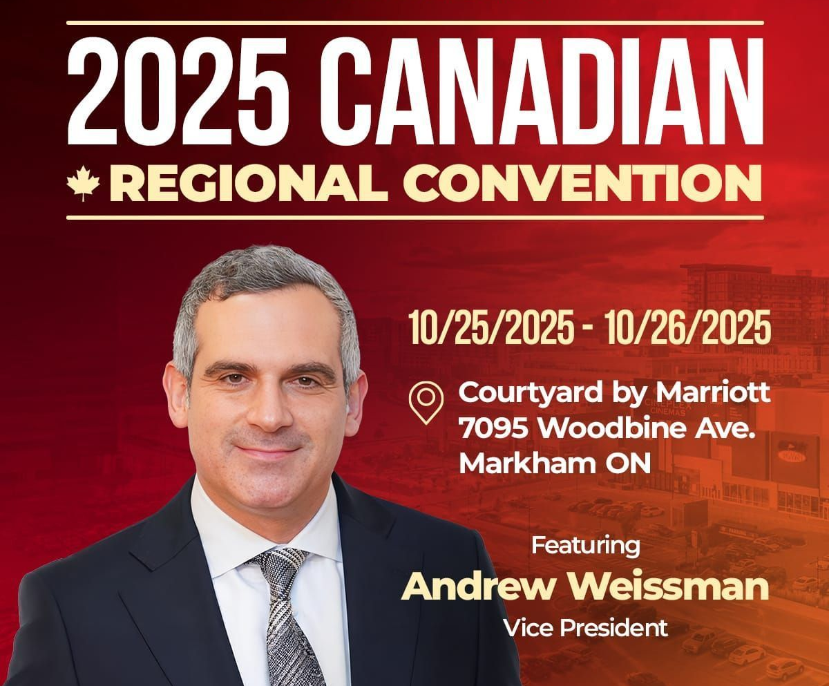 Canada, get ready — the 2025 Canadian Regional Convention is coming to Markham! Join Vice President Andrew Weissman for two days packed with learning, inspiration, and networking with fellow UnFranchise® Owners . This must-attend event is designed to provide actionable strategies to strengthen your business and maximize your success. Learn directly from top field leaders, connect with a community of like-minded entrepreneurs, and gain the tools you need to take your business to the next level. Take advantage of this opportunity to build momentum and position yourself for long-term success . Event Details: Featured Speaker: Vice President Andrew Weissman Dates: October 25–26, 2025 Location: Courtyard by Marriott, 7095 Woodbine Ave., Markham, ON Don’t wait — get your tickets now and be part of this empowering event!