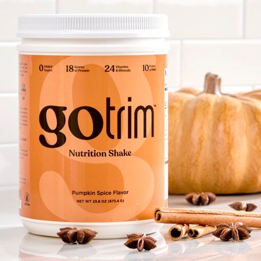 Say hello to fall’s favorite flavor — Pumpkin Spice. The new GoTrim Pumpkin Spice Shake is delicious and packed with the nutrition you need to stay on track. With 18 grams of protein, 10 grams of fiber and 24 essential vitamins and minerals per serving, this shake is a powerhouse that fuels your body with no added sugar.